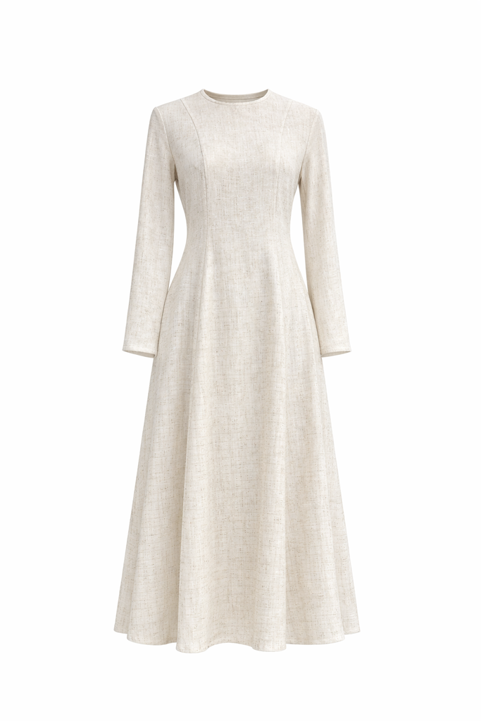 This elegant linen maxi dress features a classic round neckline, long sleeves, and a flattering fitted bodice that flows into a full A-line skirt. The lace-up corset back adds a refined touch while allowing for an adjustable fit. Crafted from breathable linen, it’s perfect for effortless, all-day elegance.